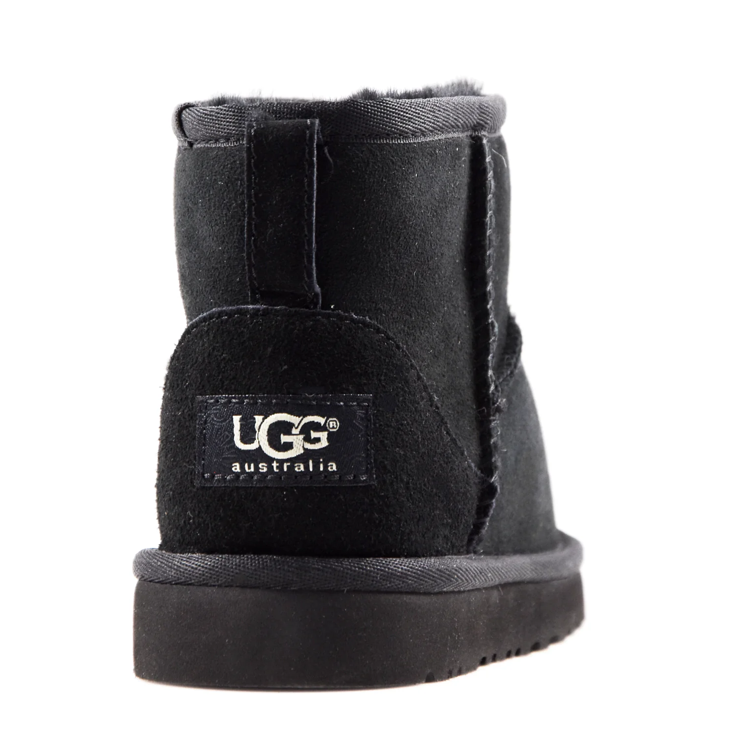 Stivaletto junior unisex Ugg Classic Mini in montone rovesciato nero, foderato con vera pelliccia nera.